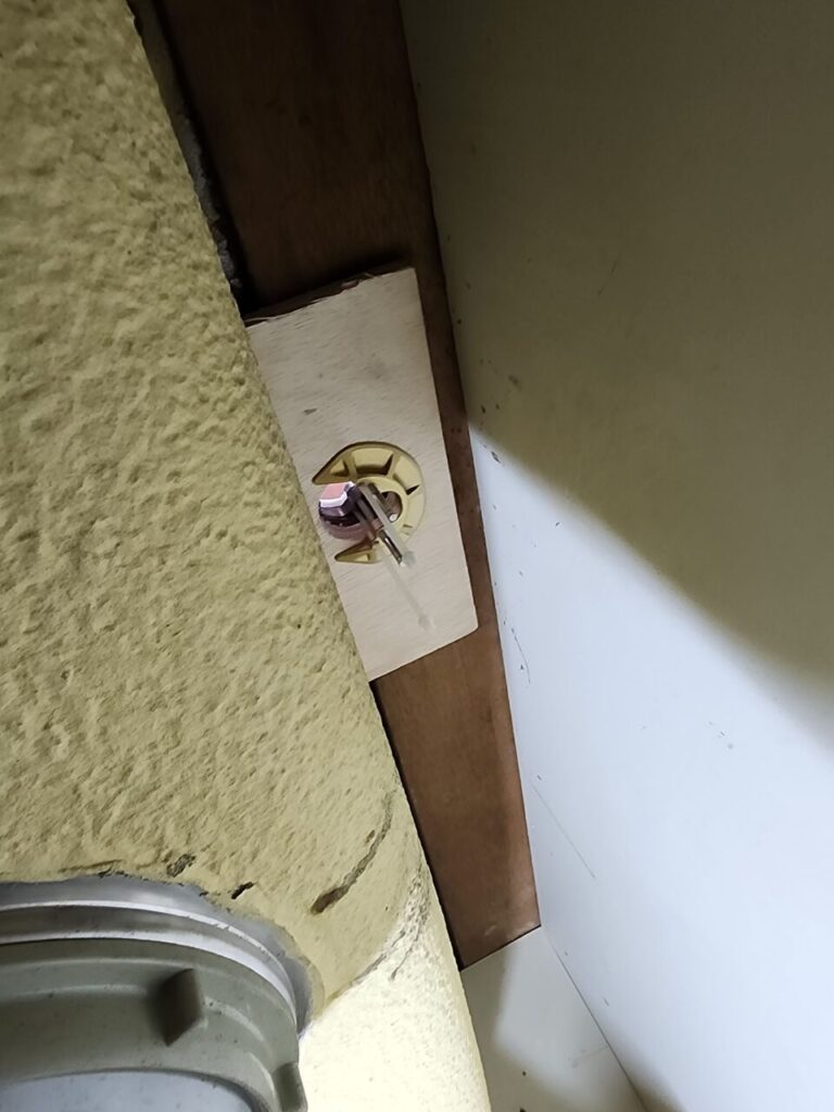 いま付いている裏板の状態を確認して今回は補強の板を追加して水栓を取り付けさせていただきました。