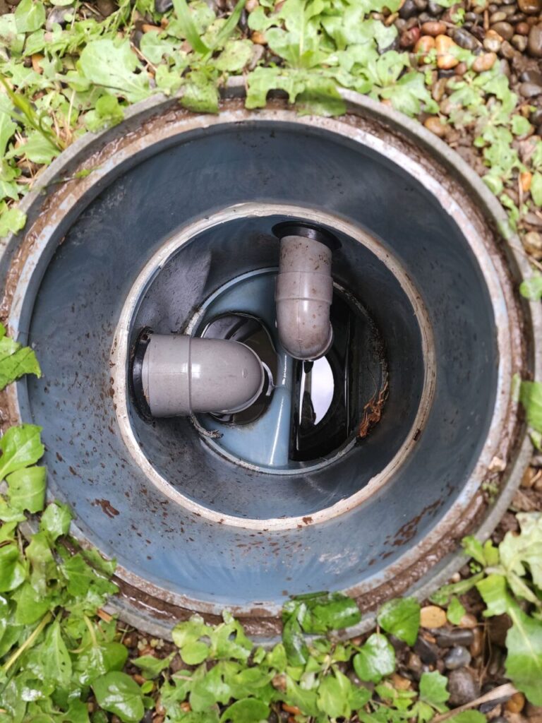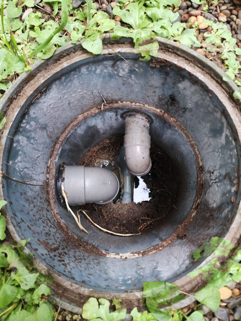 排水菅は本来緩やかな勾配がついているのですが、こちらの現場は何らかの影響により勾配が狂ってしまったようです。