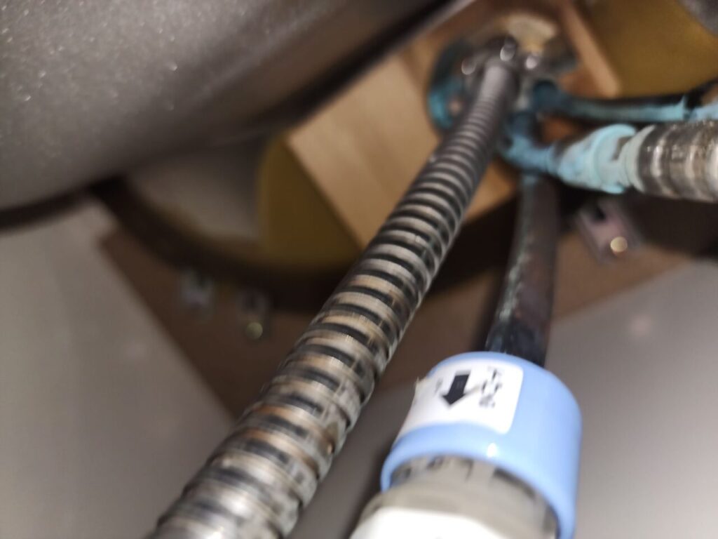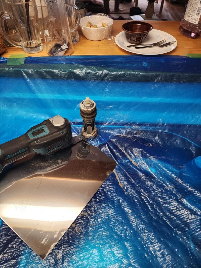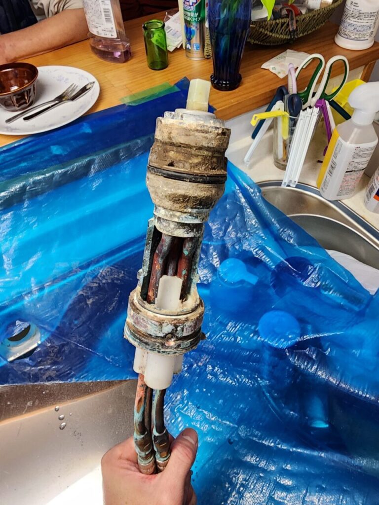 こちらの水栓も固着がひどく外れなかった為、固定のボルトを電動工具で切断しての作業となりました。